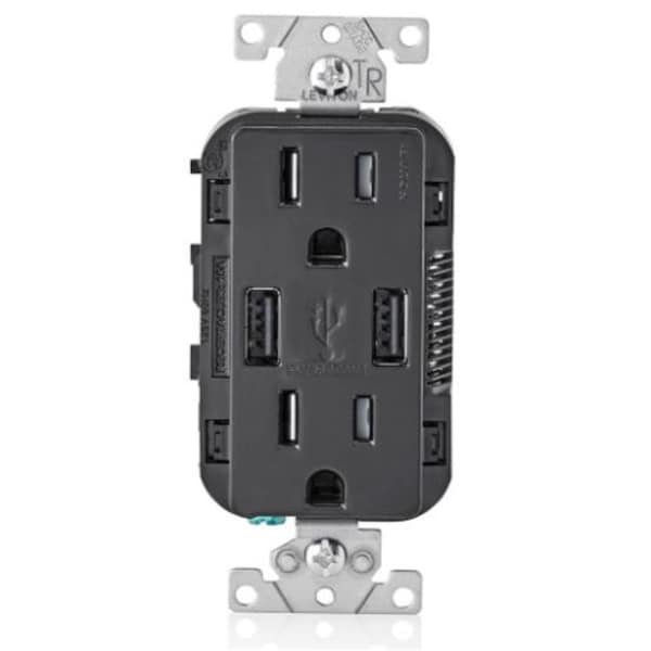 15 amps 125V Decora 5-15R Duplex Outlet & USB Charger Black