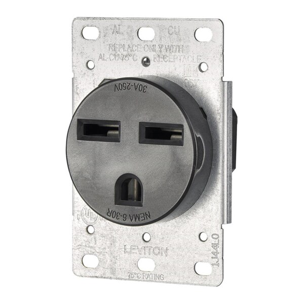 30A 250V 2-Pole Flush Mount Shallow Single Outlet Black