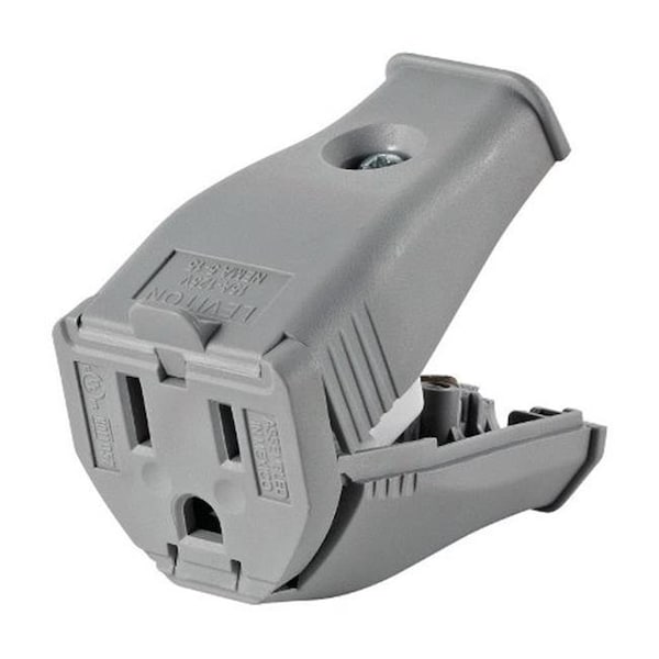 , 2 Pole 3 Wire Grounding Cord Outlet, Gray,15 amp,125 volt, Thermoplastic,Outlet