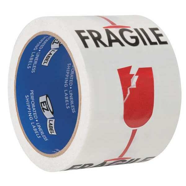 Instructional Handling Label, Language English, Primary Label Subject Care Instruction, Message Header Fragile, Message Fragile (Shattered Glass Graphic), Label Width 4 in, Label Height 2 27/32 in, Material Adhesive Back, Polypropylene, Background Color White, Labels per Roll 500, Package Quantity 500