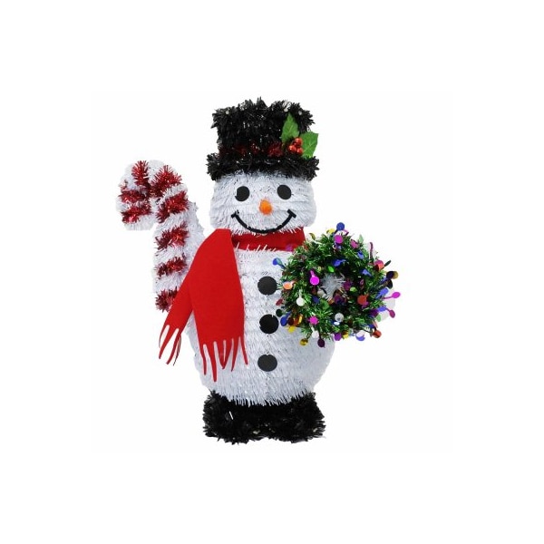 3D Christmas Opal Snowman With Black Top Hat Opal & Red Candy Cane With Red Scarf & Green Wreath.