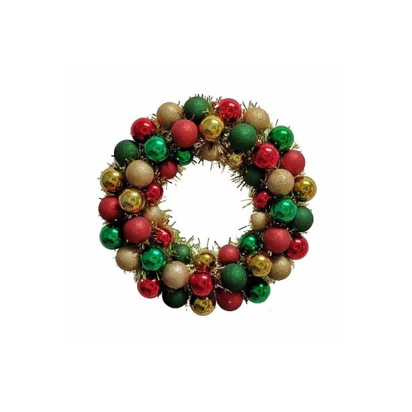 16 Red/Gold/Green Glitter Ball Wreath with Gold Tinsel
