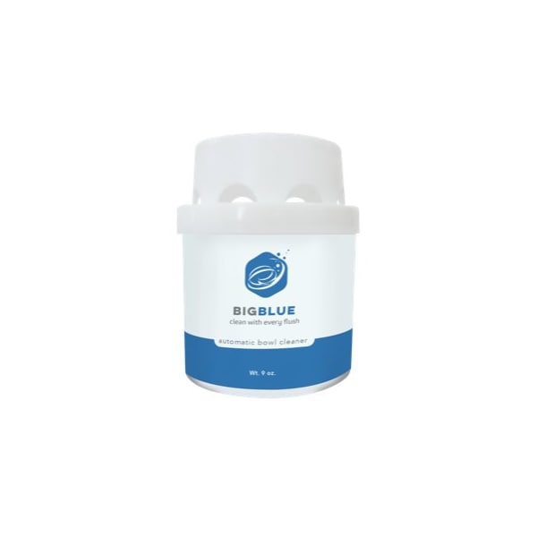 The Big Blue Automatic Bowl Cleaner cleans and deodorizes with each flush It releases a special cleaning agent that keeps your toilet clean and fresh, while leaving a protective coating to prevent scale buildupNo mixing chemicals required Just drop in the back of the toilet tank and let the product do its job With each flush, Big Blue keeps the toilet bowl clean and fresh so you don't have to clean the toilet bowl as oftenLasts up to 30 daysIntank cleaner that cleans and deodorizes while preventing scale and mildew buildupColors the water blue with each flushNonpolluting,Nontoxic,Nonstaining, and eco friendlyFits in a variety of toilet bowlsLonglasting toilet bowl cleaner provides freshness for up to 600 flushesBio Enzymatic CleanerReleases billions of beneficial bacteria to consume bio materials that cause odors, keeping toilets smelling clean and looking blueEasy to use No set up or tools necessary