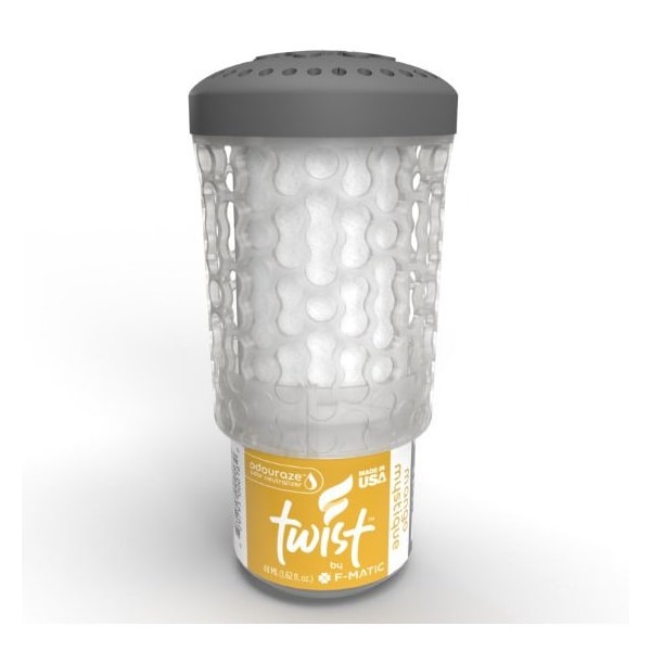 This is a sample that could be any scent available depending stock levels For use with any FMATIC Mini Passive Air Dispenser The FMATIC Passive Air System has a NEW Twist Using the same premium fragrances as our previous passive air fresheners, we designed a cartridge that is spillresistant after activation Twist activation is nearly effortless with our patented twostep twist and click execution, an audible CLICK signaling that the cartridge is activated and sealed against leakage The Twist utilizes our reliable, gravityfueled system that never requires batteries, fuel cells or any other artificial means of power to neutralize odors in up to 6,000 cubic feet of space for a full 60 days60 Day Service cycle Twist Passive Air Fresheners refill Available in 11 fresh fragrances in a variety of intensitiesMANGO MYSTIQUE Instills the fragrant atmosphere of a tropical fruit stand, the honeyed juices of freshly cut fruits glistening in the warm sun The softly sweet aromas of mango, papaya, passionfruit, and orange star in this mouthwatering fragrance This item is compatible with Rubbermaid FG402369A