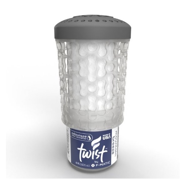 This is a sample that could be any scent available depending stock levels For use with any FMATIC Mini Passive Air Dispenser The FMATIC Passive Air System has a NEW Twist Using the same premium fragrances as our previous passive air fresheners, we designed a cartridge that is spillresistant after activation Twist activation is nearly effortless with our patented twostep twist and click execution, an audible CLICK signaling that the cartridge is activated and sealed against leakage The Twist utilizes our reliable, gravityfueled system that never requires batteries, fuel cells or any other artificial means of power to neutralize odors in up to 6,000 cubic feet of space for a full 60 days60 Day Service cycle Twist Passive Air Fresheners refill Available in 11 fresh fragrances in a variety of intensitiesMOUNTAIN BREEZE Mountain Breeze evokes the crisp, cool air of a springtime alpine meadow Freshcut pine, lilyofthevalley, and woodland musk all combine to offer a fragrance that is at once refreshing and comforting This item is compatible with Rubbermaid FG402112