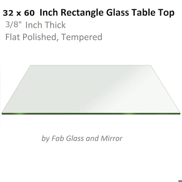 3/8in Thick Flat Edge Tempered Radius Corner Rectangle Glass Table Top, 32in X 60in Dining Table