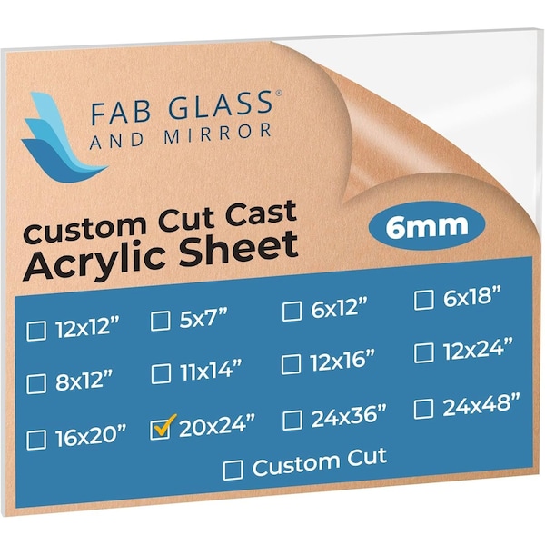 Acrylic Sheet Plexiglass, Rectangle PET Sheet 20in x 24in with Protective Film, 1/4in Clear Pan...