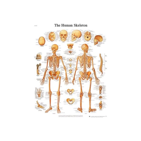 3b anatomical chart - skeleton, laminated anatomical chart: human skelton. Chart measures: 20 x 25 in. Laminated.