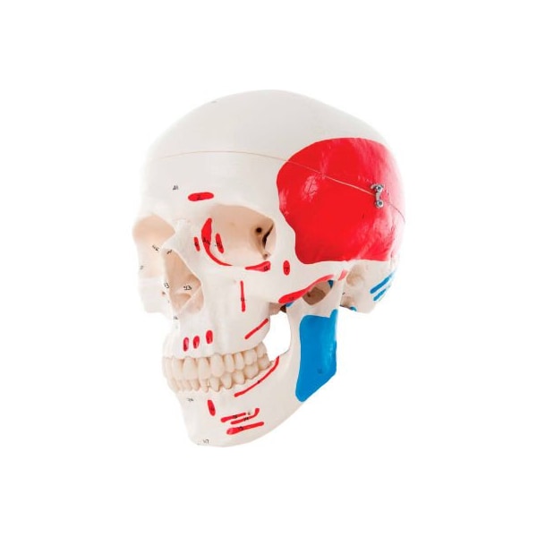 3b anatomical model - classic skull, 3-part painted 3 part painted skull model is ideal for active use in teaching and demonstrations. Perfect for basic anatomical studies or an attractive medical gift. Natural cast, medical quality 3 part skull. Colors highlight different areas.