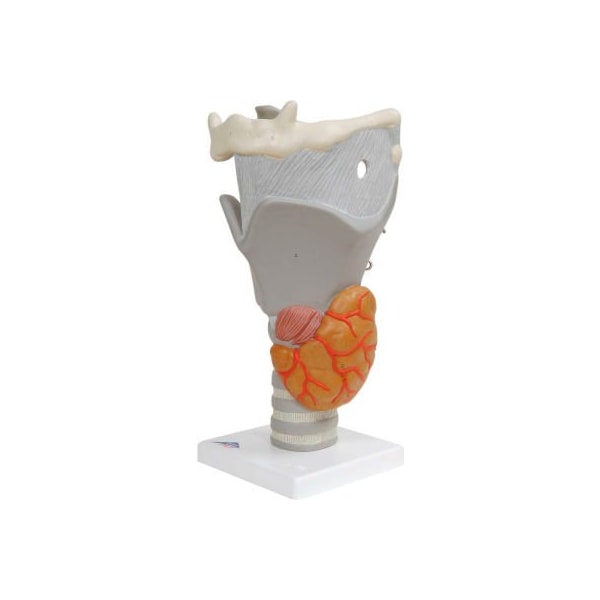 3b anatomical model - functional larynx (2.5x size) functional larynx model is 2.5x size. The epiglottis, vocal cords and arytenoid cartilage are movable in the functional larynx. Additionally the following structures of the human larynx are represented: hyoid bone, cricoid cartilage, thyroid cartilage, thyroid, parathyroid glands. This anatomically correct human larynx is a great addition to any doctors office or classroom. The functional larynx model is on a stand.