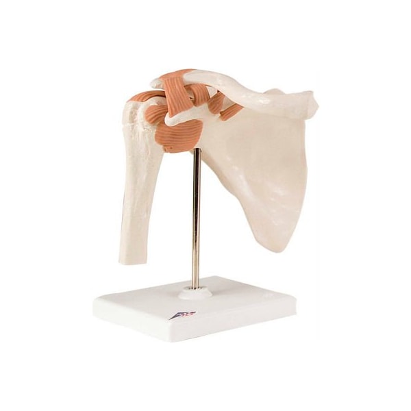 3b anatomical model - functional shoulder joint this high quality functional shoulder joint model provides a graphic demonstration of the anatomy and mechanics of the shoulder joint, allowing better doctor-patient or teacher-student understanding of the anatomy of joints. Use this life-size and fully flexible shoulder joint model to demonstrate abduction, anteversion, retroversion, internal/external rotation and much more. Shoulder joint model consists of shoulder blade, collar bone, portion of humerus and joint ligaments. The functional shoulder joint model is on a stand for easy study of the anatomy of the human shoulder.