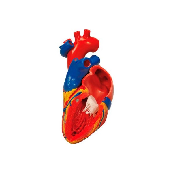 3b anatomical model - heart with bypass, 2-part highly detailed 2 part heart at a price you will love. The front heart wall is detachable to reveal the chambers and valves inside. Heart just slightly smaller than life-size with exquisite anatomical detail throughout. Heart includes venal bypasses to the right coronary artery, to the ramus interventricular is anterior, and also to the ramus circumflexus of the left coronary artery, which are shown in color. This heart model is a great aid explaining the treatment of coronary heart disease. Heart on removable stand.