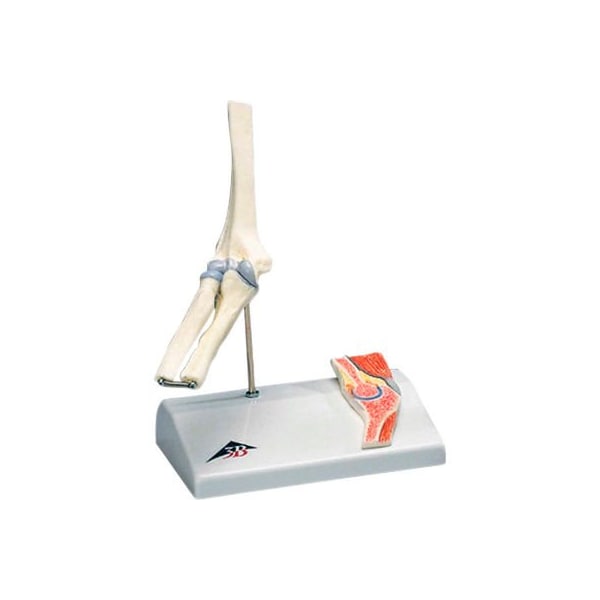 3b anatomical model - mini elbow joint with cross section of bone on base the mini elbow joint has been reduced to a half of the natural size but has kept all of the functionality of larger elbow joint models. In addition to the external anatomical structures of the elbow joint, using the superb new elbow joint cross-section mounted on the base, the medical or teaching professional now has the possibility to explain what is happening from "within" the elbow joint.