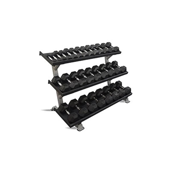 69 in. 3-Tier Tray Style DB Rack with Rubber Hex Dumbbell Set - 15 Pair