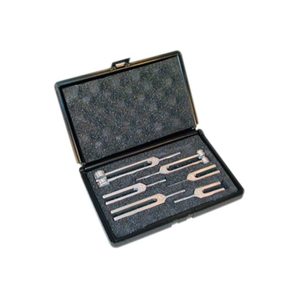 Baseline 6-piece tuning fork set with carrying case evaluate hearing and vibratory sensation. Non-magnetic, corrosion-resistant aluminum alloy construction for light weight and durability. This set includes 6-piece tuning forks (128, 256, 512, 1024, 2048, 4096 cps).