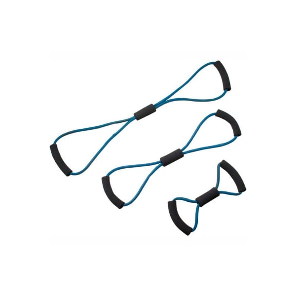 Cando bowtie tubing exerciser, full body set -14", 22", 30"), blue, 3/set lightweight, compact and portable, the tubing exerciser helps perform strengthening and conditioning workouts on-the-go, even in your hotel room!! two permanent foam covered rigid handles give the exerciser comfort and a firm grasp. Cando is licensed to use the thera-band color sequence so resistance level is easily identified. The bowtie exerciser is available in 7 levels of resistance for progressive exercise and 3 lengths to accommodate different needs. Levels range in order of strength from least to greatest resistance: tan, yellow, red, green, blue, black, silver. Length represents length of tubing from end to end when unit is laid flat and is taut. Cando low powder exercise tubing is made of natural rubber latex, which may cause allergic reactions. 3 piece set: 14", 22", 30", blue.