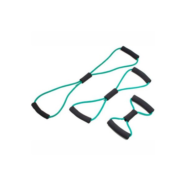 Cando bowtie tubing exerciser, full body set -14", 22", 30"), green, 3/set lightweight, compact and portable, the tubing exerciser helps perform strengthening and conditioning workouts on-the-go, even in your hotel room!! two permanent foam covered rigid handles give the exerciser comfort and a firm grasp. Cando is licensed to use the thera-band color sequence so resistance level is easily identified. The bowtie exerciser is available in 7 levels of resistance for progressive exercise and 3 lengths to accommodate different needs. Levels range in order of strength from least to greatest resistance: tan, yellow, red, green, blue, black, silver. Length represents length of tubing from end to end when unit is laid flat and is taut. Cando low powder exercise tubing is made of natural rubber latex, which may cause allergic reactions. 3 piece set: 14", 22", 30", green.