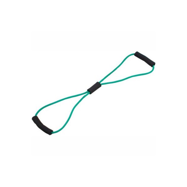 Cando bowtie tubing exerciser, green, 30" lightweight, compact and portable, the tubing exerciser helps perform strengthening and conditioning workouts on-the-go, even in your hotel room!! two permanent foam covered rigid handles give the exerciser comfort and a firm grasp. Cando is licensed to use the thera-band color sequence so resistance level is easily identified. The bowtie exerciser is available in 7 levels of resistance for progressive exercise and 3 lengths to accommodate different needs. Levels range in order of strength from least to greatest resistance: tan, yellow, red, green, blue, black, silver. Length represents length of tubing from end to end when unit is laid flat and is taut. Cando low powder exercise tubing is made of natural rubber latex, which may cause allergic reactions. 30" - green - medium.