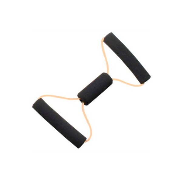 Cando bowtie tubing exerciser, tan, 14" lightweight, compact and portable, the tubing exerciser helps perform strengthening and conditioning workouts on-the-go, even in your hotel room!! two permanent foam covered rigid handles give the exerciser comfort and a firm grasp. Cando is licensed to use the thera-band color sequence so resistance level is easily identified. The bowtie exerciser is available in 7 levels of resistance for progressive exercise and 3 lengths to accommodate different needs. Levels range in order of strength from least to greatest resistance: tan, yellow, red, green, blue, black, silver. Length represents length of tubing from end to end when unit is laid flat and is taut. Cando low powder exercise tubing is made of natural rubber latex, which may cause allergic reactions. 14" - tan - xx-light.