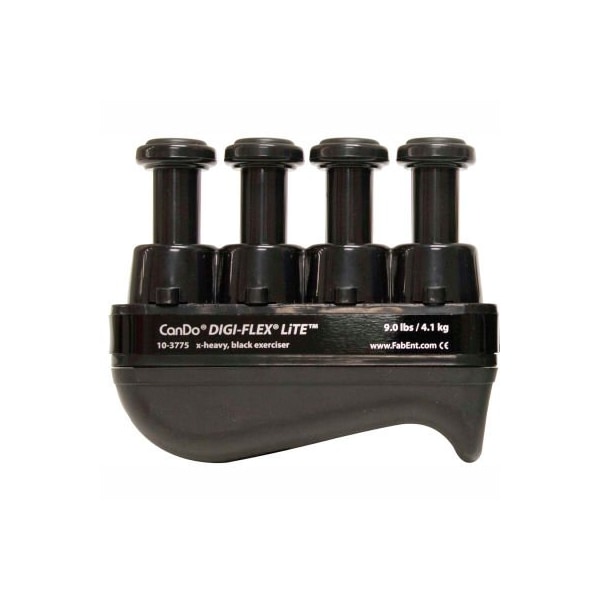 Cando digi-flex lite hand exerciser, black, x-heavy the cando digi-flex lite develops isolated finger strength, flexibility and coordination as it builds hand and forearm strength. Each finger button can individually lock. Each button has a single spring that is covered by plastic sheath. Use each button independently to exercise fingers or compress the entire unit for complete hand and forearm strengthening. Progressivecolor-coded resistance gives patient positive feedback. Black - x-heavy.