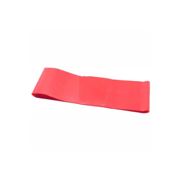 Cando exercise band loop, 10" long, red 10" long exercise loop. 10" long loop is equivalent to 20" of flat band cut and tied in a knot. Loop is 3" wide. Convenient pre-formed loop is made of high quality latex exercise band. Loops arrive ready-to-use, you do not have to cut and tie it before performing exercises!! 10" long loop is specially sized for upper body exercises. 10" long - red - light.