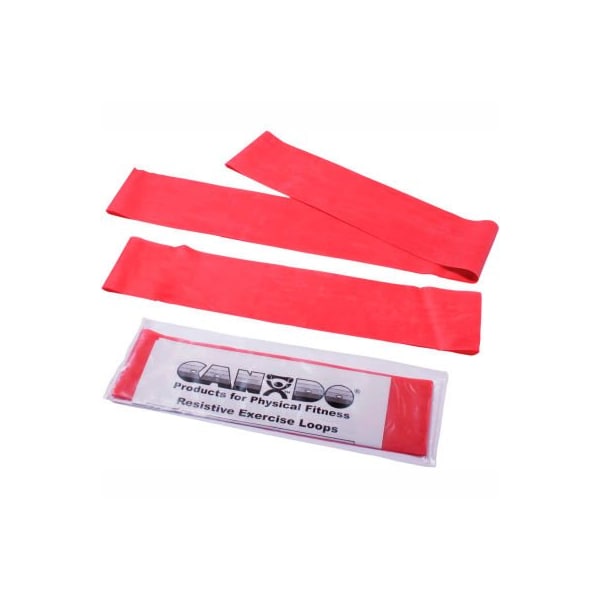 Cando exercise band loop exerciser, 3 size set -10", 15", 30"), red 3-size exercise loop set. Includes 10", 15" and 30" long exercise loops. Loops are equivalent to 20", 30" and 60" respectively of flat band cut and tied in a knot. Loops are 3" wide. Convenient pre-formed loop is made of high quality latex exercise band. Loops arrive ready-to-use, you do not have to cut and tie it before performing exercises!! 10" loop is sized for upper body, 20" loop is sized for lower body, and 30" long loop is specially sized for full body exercises. 3 piece set -10",15",30"), red - light