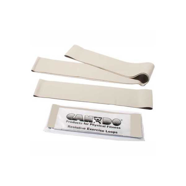 Cando exercise band loop exerciser, 3 size set -10", 15", 30"), silver 3-size exercise loop set. Includes 10", 15" and 30" long exercise loops. Loops are equivalent to 20", 30" and 60" respectively of flat band cut and tied in a knot. Loops are 3" wide. Convenient pre-formed loop is made of high quality latex exercise band. Loops arrive ready-to-use, you do not have to cut and tie it before performing exercises!! 10" loop is sized for upper body, 20" loop is sized for lower body, and 30" long loop is specially sized for full body exercises. 3 piece set -10",15",30"), silver - xx-heavy