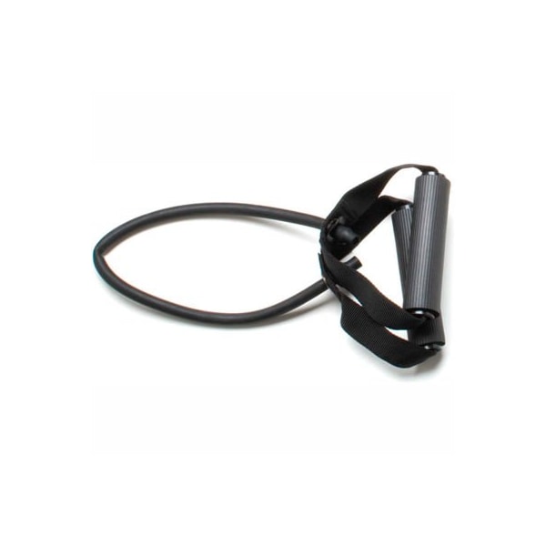 Cando exercise tubing with handles, black, 18" lightweight, compact and portable, the tubing exerciser helps perform strengthening and conditioning workouts on-the-go, even in your hotel room!! two permanent foam covered rigid handles give the exerciser comfort and a firm grasp. Cando is licensed to use the thera-band color sequence so resistance level is easily identified. The tubing with handles exerciser is available in 7 levels of resistance for progressive exercise and 3 lengths to accommodate different needs. Levels range in order of strength from least to greatest resistance: tan, yellow, red, green, blue, black, silver. Length represents length of tubing from end to end when unit is laid flat and is taut. Cando low powder exercise tubing is made of natural rubber latex, which may cause allergic reactions. 18" - black - x-heavy.