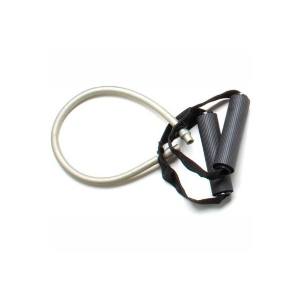 Cando exercise tubing with handles, silver, 18" lightweight, compact and portable, the tubing exerciser helps perform strengthening and conditioning workouts on-the-go, even in your hotel room!! two permanent foam covered rigid handles give the exerciser comfort and a firm grasp. Cando is licensed to use the thera-band color sequence so resistance level is easily identified. The tubing with handles exerciser is available in 7 levels of resistance for progressive exercise and 3 lengths to accommodate different needs. Levels range in order of strength from least to greatest resistance: tan, yellow, red, green, blue, black, silver. Length represents length of tubing from end to end when unit is laid flat and is taut. Cando low powder exercise tubing is made of natural rubber latex, which may cause allergic reactions. 18" - silver - xx-heavy.