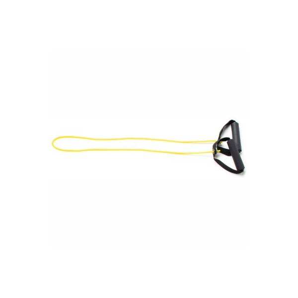 Cando exercise tubing with handles, yellow, 48" lightweight, compact and portable, the tubing exerciser helps perform strengthening and conditioning workouts on-the-go, even in your hotel room!! two permanent foam covered rigid handles give the exerciser comfort and a firm grasp. Cando is licensed to use the thera-band color sequence so resistance level is easily identified. The tubing with handles exerciser is available in 7 levels of resistance for progressive exercise and 3 lengths to accommodate different needs. Levels range in order of strength from least to greatest resistance: tan, yellow, red, green, blue, black, silver. Length represents length of tubing from end to end when unit is laid flat and is taut. Cando low powder exercise tubing is made of natural rubber latex, which may cause allergic reactions. 48" - yellow - x-light.