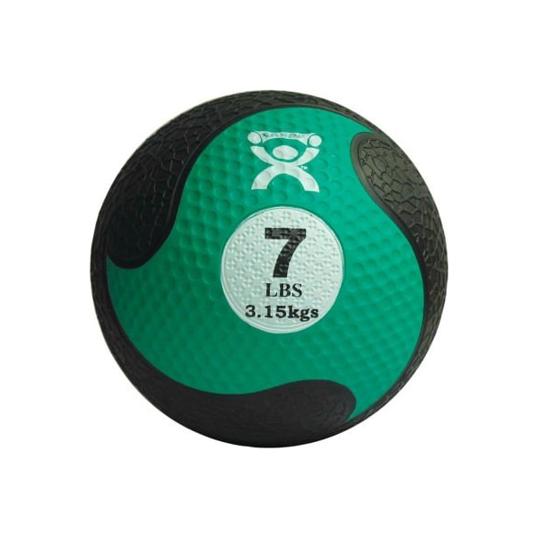 Cando firm medicine ball, 7 lb., 9" diameter, green color coded plyometric balls available from 1 to 30 pounds. Balls have firm rubber exterior shell and uniform weight distribution. Balls have easy-to-grip rubber surface. Balls can be used with trampoline rebounder and thrown back and forth with a partner. Firm ball - 9" diameter - green - 7 lb.
