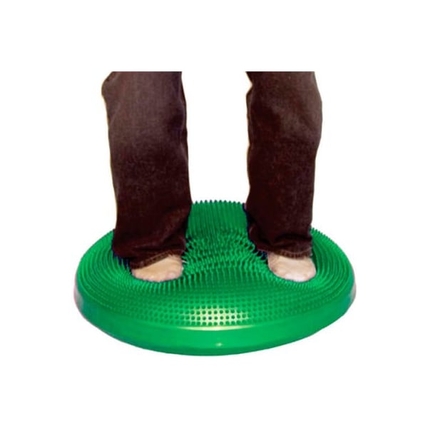 Cando inflatable vestibular seating/standing disc, 60 cm (24"), green cando inflatable vestibular disc mimics the movement and shape of an inflatable ball when used on any seat. Use it on the floor as a standing disc for balance training, proprioception and strengthening of the lower extremities. Each disc has one nubby side for tactile feedback and stimulation, and one flat side. Disc inflates and deflates with standard pump. Vary the inflation level to change the level of vestibular challenge. Available in 5 colors for aesthetic purposes and two sizes: 14" (35 cm) and 24" (60 cm). 24" (60 cm) diameter - green.