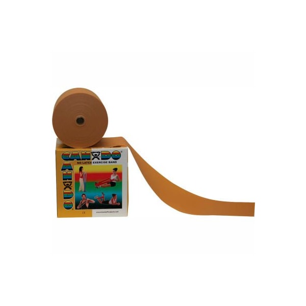 Cando latex-free exercise band, gold, 50 yard roll, 1 roll/box cando resistive band exerciser roll is packaged in a dispenser box. Simply unroll desired length of exercise band from dispenser box and cut with scissors. Cando high quality synthetic latex free exercise band has been used for physical therapy and athletic training by clinics, fitness centers and individuals since 1987. It has become a well known staple of many physical therapy programs. The latex free formula has been specially created to mimic the stretch characteristics of latex band. Cando exercise band is an economic solution for upper and lower body exercise. Lightweight, compact and portable. Durable. Effective when used alone, or with handles and anchors. Color-coded according to the exercise band's resistance. Cando is licensed to use the thera-band color sequence so resistance level is easily identified. Available in 8 levels of resistance for progressive exercise. 50 yard rolls have a core that fits most dispenser racks. Levels range in order of strength from least to greatest resistance: tan, yellow, red, green, blue, black, silver, gold. Uniform width - each band is 5" wide. 50 yard roll - gold - xxx-heavy.