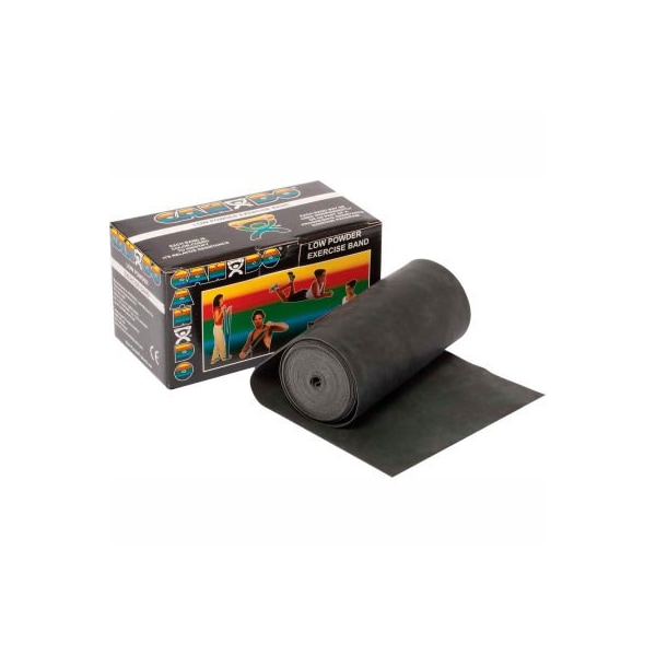 Cando low powder exercise band, black, 6 yard roll, 1 roll/box cando resistive exercise band roll is packaged in a dispenser box. Simply unroll desired length of exercise band from dispenser box and cut with scissors. Cando high quality latex resistive exercise band has been used in clinics for rehabilitation, conditioning and training since 1987. It has become a well known staple of many physical therapy programs. Cando exercise band is an economic solution for upper and lower body exercise. Lightweight, compact and portable. Durable. Effective when used alone, or with handles and anchors. Color-coded according to the exercise band's resistance. Cando is licensed to use the thera-band color sequence so resistance level is easily identified. Available in 8 levels of resistance for progressive exercise. Levels range in order of strength from least to greatest resistance: tan, yellow, red, green, blue, black, silver, gold. Uniform width - each band is 5" wide. Cando low powder exercise band is made of natural rubber latex, which may cause allergic reactions. For those with latex sensitivities, there are latex-free alternative offerings of cando exercise band. 6 yard roll - black - x-heavy.