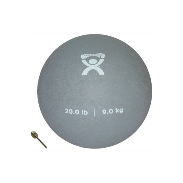 Cando soft pliable medicine ball, 20 lb., 9" diameter, silver color-coded plyometric balls available from 1 to 30 pounds. Balls have soft, flexible rubber exterior shell. Balls have easy-to-grip rubber surface. Textured tactile surface is easy to grip, grasp and catch. Increase or decrease air in the ball to make ball easier to grasp. Use for upper body rehabilitation and fitness exercises. Balls can be used with trampoline rebounder and thrown back and forth with a partner. Soft pliable ball - 9" diameter - silver - 20 lb.