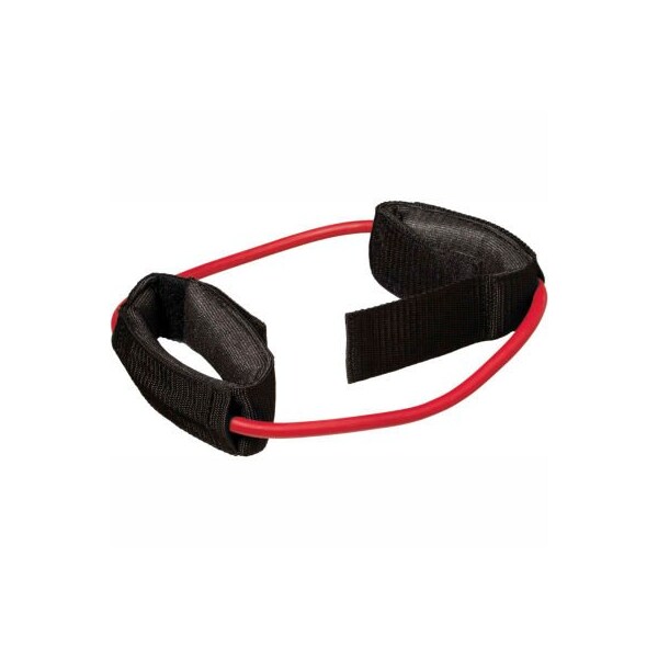 Cando tubing with cuff exerciser, 35" circumference, red lightweight, compact and portable, the tubing exerciser helps perform strengthening and conditioning workouts on-the-go, even in your hotel room!! continuous tubing loop has two padded ankle/wrist cuffs. The exerciser is preassembled and has a circumference of 35". Cando is licensed to use the thera-band color sequence so resistance level is easily identified. The tubing with cuff exerciser is available in 7 levels of resistance for progressive exercise and 3 lengths to accommodate different needs. Levels range in order of strength from least to greatest resistance: tan, yellow, red, green, blue, black, silver. Length represents length of tubing from end to end when unit is laid flat and is taut. Cando low powder exercise tubing is made of natural rubber latex, which may cause allergic reactions. 35" - red - light.