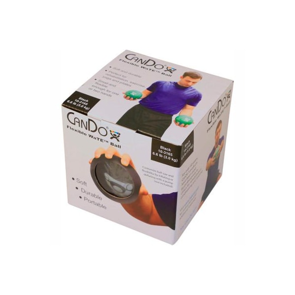 Cando wate hand-held weighted ball, black, 3 kg/6.6 lb. the color coded weighted balls are small enough and flexible enough to grasp with one hand, yet big enough to hold with two hands. Available in 6 weights ranging from 1.1 pounds through 6.6 pounds (0.5 kg to 3 kg.) while maintaining a constant 5" (12.7 cm) diameter. Balls are soft and comfortably conform to your grasp. Use a bicycle pump to inflate/deflate to make ball harder/easier to grasp. Cando wate ball - hand-held size - black - 5" diameter - 6.6 lb.