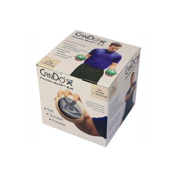 Cando wate hand-held weighted ball, tan, 0.5 kg/1.1 lb. the color coded weighted balls are small enough and flexible enough to grasp with one hand, yet big enough to hold with two hands. Available in 6 weights ranging from 1.1 pounds through 6.6 pounds (0.5 kg to 3 kg.) while maintaining a constant 5" (12.7 cm) diameter. Balls are soft and comfortably conform to your grasp. Use a bicycle pump to inflate/deflate to make ball harder/easier to grasp. Cando wate ball - hand-held size - tan - 5" diameter - 1.1 lb.