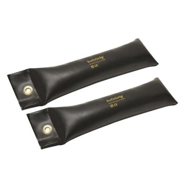 Use the comfortable CanDo SoftGrip hand weights instead of dumbbells. The product was developed by a patient during a physical therapy session. She was having difficulty grasping the 2 pound dumbbell prescribed to her as her hand was too big. She wanted something that would conform to her grasp, be comfortable, and unintimidating. SoftGrip hand weights are also great for light workouts and for the arthritic patient. The SoftGrip is soft but not floppy, color-coded to indicate weight, and has a grommet hole for storage on hooks. 10 lb - Black - pair