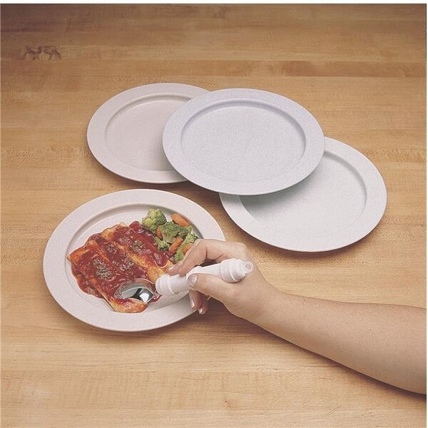 Deep inner lip keeps food from sliding off the plate. Bring utensil to the edge of the plate and push the food onto the utensil 9" diameter. Dishwasher, autoclave and microwave safe, except non-skid version.