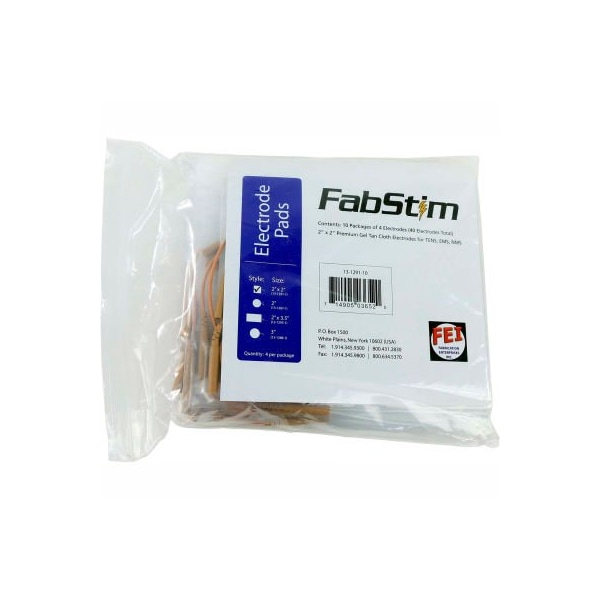 Fabstim self-adhesive tens electrodes, square 2" (5.1 cm), 40/bag self-adhesive electrodes are both economical and functional. Fabstim electrodes are made of high quality tyco gel and cloth. 2" square, 40/bag (10 sheets of 4).
