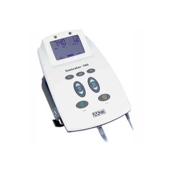 Mettler sonicator 740 portable therapeutic ultrasound unit with 5 cm applicator the sonicator 740 is 1 and 3 mhz therapeutic ultrasound unit that comes standard with a 5cm2 dual frequency applicator. It is light-weight and portable and features a universal applicator cable to make changing applicators quick and easy. There is an optional rechargeable lithium ion battery pack that truly allows you to take therapy on the road with you. Large soft-touch controls let you set-up treatments quickly and easily and the backlit display shows all treatment parameters and conditions.