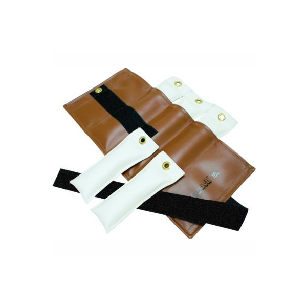 Pouch adjustable wrist and ankle weight, 10 lb., brown, 1 set the pouch variable wrist and ankle weight offers an adjustable weight solution that is comfortable to wear. The total resistance is varied by inserting or removing the individual weight packets. Each variable weight comes with 5 weight packets (for example, a 5-lb pouch weight comes with five 1-lb weights). Each weight belts is color coded to identify maximum capacity. 2.5, 5, 10, 15, 20 and 25 pound capacity weights available. Pouch variable wrist and ankle weight - 10 lb., 5 x 2 lb. Inserts - brown.