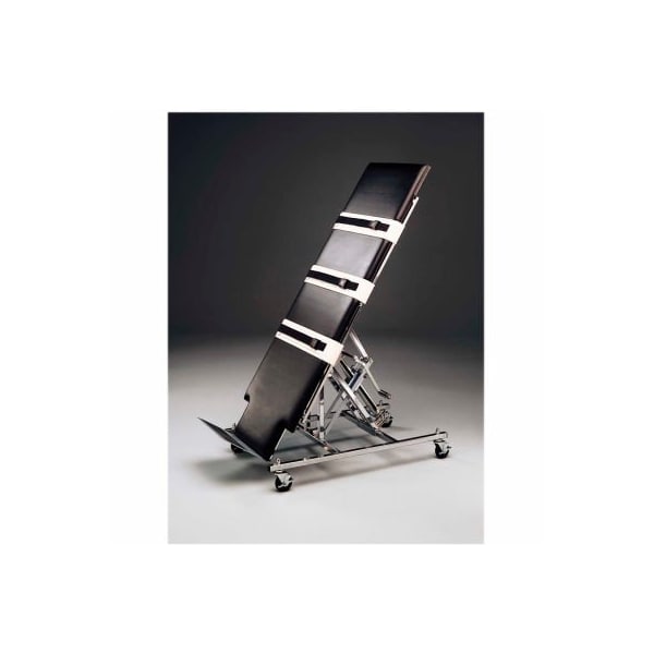 professional manual tilt table requires 15 percent fewer turns than previous units. Heavy duty gears and bearings will give years of trouble-free service. 32"high. Retractable adjustment handle. Tilts from full vertical to 12 degrees below horizontal. Chrome plated frame. Black vinyl is standard. Other decorator colors are available. Incorporate a host of desirable features, including: 28"wide x 72"long x 1" top. Welded steel construction. Metal walk off foot plate, 14" x 17-1/2", with safety tread. Three wide safety straps. Special 4" easy roll, shock absorbing, semi-pneumatic casters, with individual step on brakes. Black vinyl standard upholstery color. note: to select a different upholstery color or wood finish, please call global's customer service prior to placing order. (800) 645-1232.
