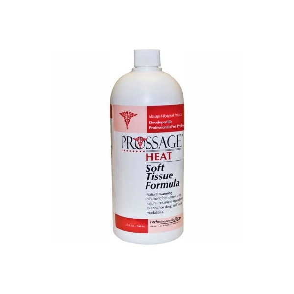 Prossage warming gel, 32 oz. Bottle, case of 8 100% natural therapeutic warming ointment for myofascial release, deep tissue work and trigger point therapy. Prossage heat was developed specifically to produce gentle penetrating heat to the skin, fascia, muscles and other soft tissue structures. As tissues soften, more blood and oxygen penetrates congested areas reducing the ischemia responsible for many chronic pain syndromes, orthopedic conditions and common sports injuries. By applying palmer friction techniques, the soft tissues warm, access to deep painful connective tissue adhesions can be faster, more effective, and pain free. Prossage heat is an area specific warming ointment, not an all-over bodywork and massage oil. 32 oz. Bottle, case of 8.
