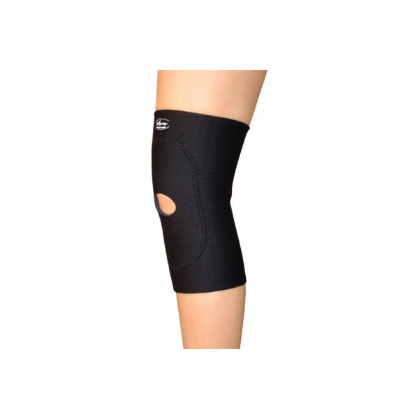 Sof-seam knee support with open patella, small, 12"-14" basic neoprene knee support with open patella includes standard pullover neoprene sleeve provides compression with therapeutic warmth. Neoprene is 3mm thick with double layer for added compression over the knee joint. Indicated for mild knee strains/sprains, arthritis, and reducing edema. Color: black. Features: basic neoprene sleeve and double layer around knee joint. Circumference at knee center: small 12" - 14".
