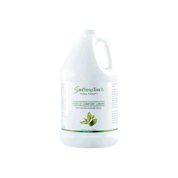 Soothing touch balancing cream unscented, 1 gallon muscle comfort cream, pumpable, 1 gallon: ease deep-rooted tension using soothing touch muscle comfort cream. Ideal for deep tissue work and easing muscle tension, this rich cream is formulated to energize the body and mind. Infused with the healing elements of eucalyptus, peppermint, clove, arnica and ginger for a rejuvenating treatment. Muscle comfort cream has a very subtle peppermint scent and a smooth glide to help you break through surface tension allowing for a deeper massage.