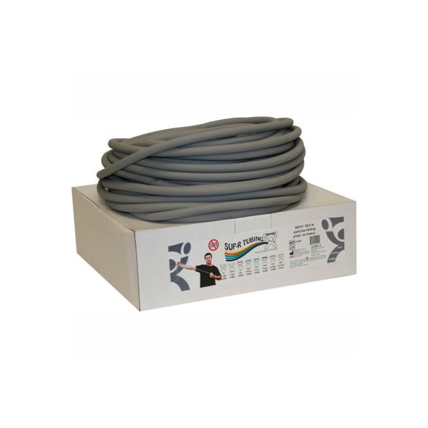 Sup-r tubing latex free exercise tubing, silver, 100' roll/box latex free sup-r-tubing is the only brand exercise tubing you'll ever need because it performs like latex with the non-allergenic properties of latex-free. Tubing is available in 8 resistance levels. Levels range in order of strength from least to greatest resistance: tan, yellow, red, green, blue, black, silver, gold. Resistance exercise tubing has become a staple of many physical therapy and athletic training programs. It is an economic solution for upper and lower body exercise. It is lightweight, portable and durable. Effective when used alone, or with handles and anchors. Simply unroll desired length of exercise tubing and cut with scissors. 100' dispenser roll - silver - xx-heavy.