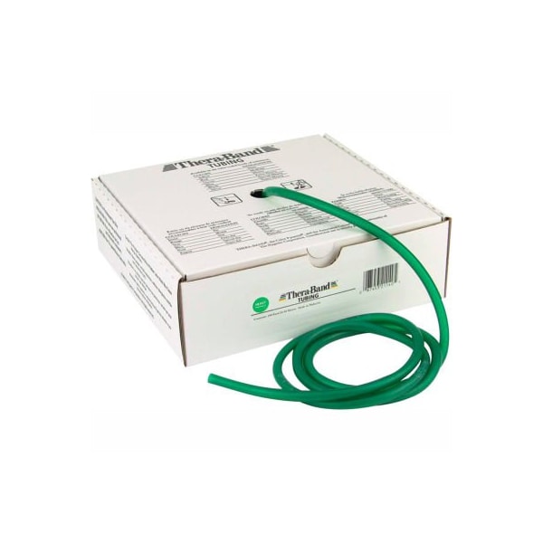 Thera-band latex exercise tubing, green, 100' roll/box thera-band tubing is made of natural rubber. Resistance levels, obtained by varying the thickness of the tubing, are color-coded in proprietary thera-band colors increasing in difficulty through seven levels from tan through silver. The color-coding system provides positive reinforcement and feedback for gauging results. 100' roll - green - heavy.