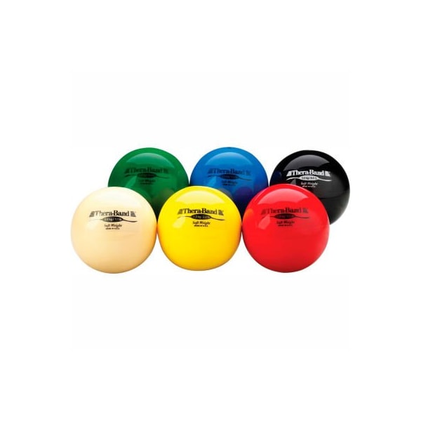 Thera-band soft weights ball, 6 color set thera-band soft weights are designed with a soft cover and pliable filler free of any hard edges or rims. Each weight is 4-1/2" in diameter and can be used for strengthening, plyometrics, balance training, mobilization and functional grip strength development. The ball supports one or two hand activities and is comfortable to hold. The ball can also easily fit into a gym bag. Thera-band soft weights ball - 6 piece set (1 each: tan, yellow, red, green, blue, black).